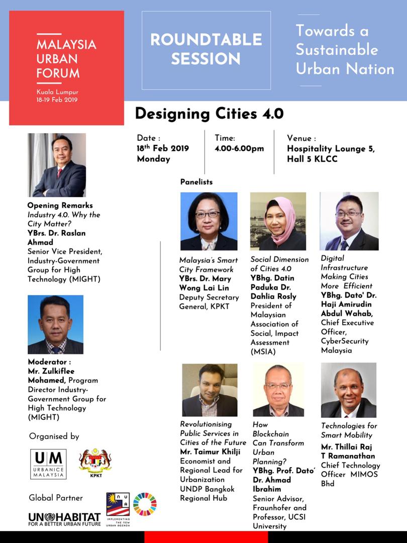 Malaysia Urban Forum on 18-19 February 2019, Kuala Lumpur