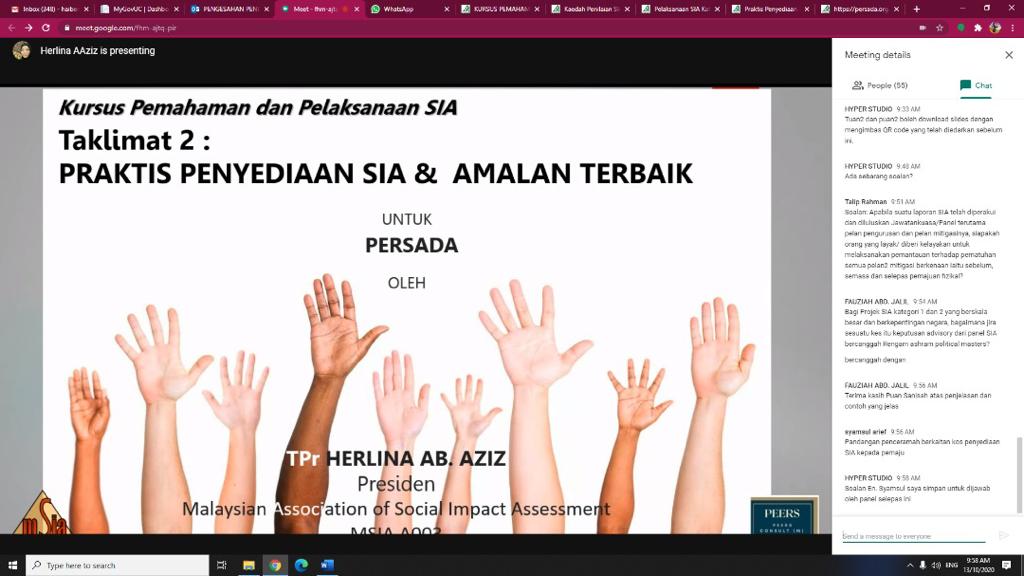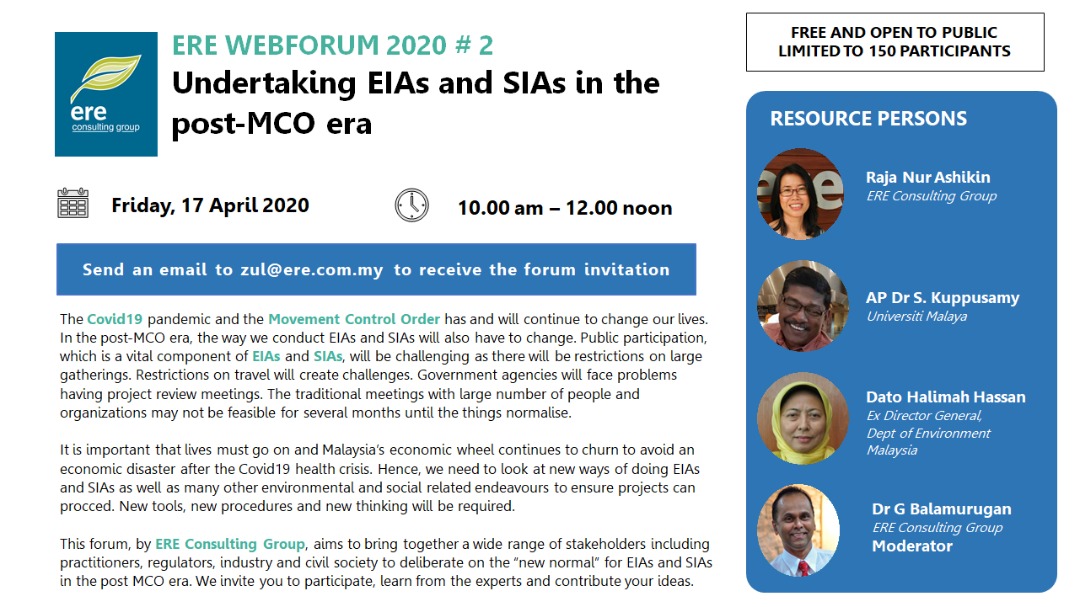 “MSIA Exco members’ online Google-Meet Conference on EIA and SIA: Undertaking EIAs and SIAs in the post-MCO Era”, organised by ERE Consulting Group @ 17.04.2020.