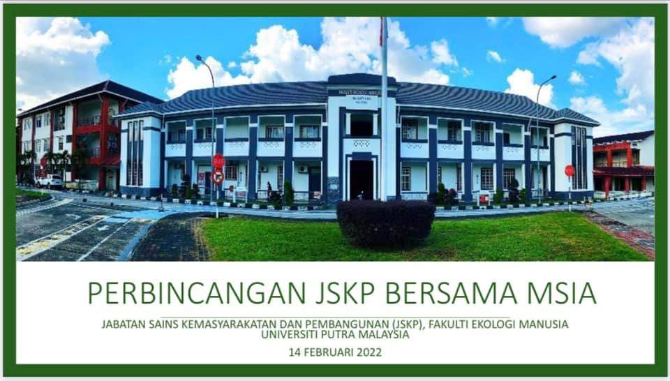 Perbincangan JSKP bersama MSIA at Jabatan Sains Kemasyarakatan dan Pembangunan (JSKP), Fakulti Ekologi Manusia, Universiti Putra Malaysia on 14 February 2022