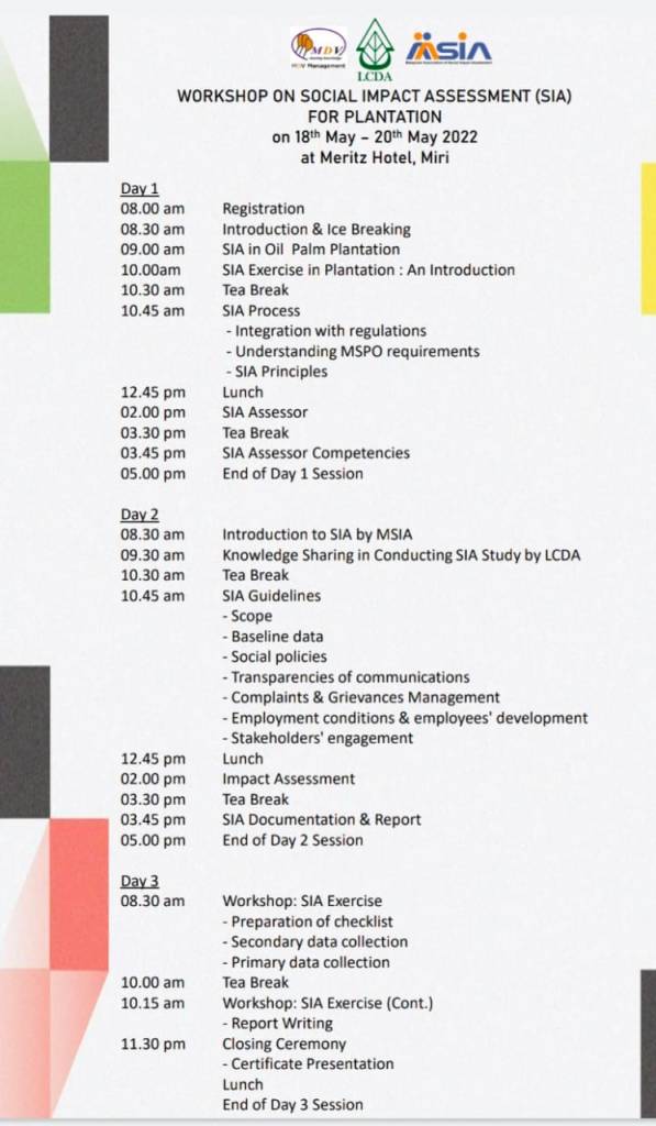 2-day Workshop on Best Practices in Social Impact Assessment, 14-15 March 2022, Waterfront Hotel, Kuching.