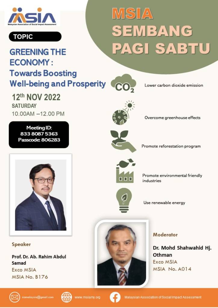 MSIA Sembang Pagi Sabtu: Greening the Economy: Towards Boosting Well-being and Prosperity on 12th November 2022