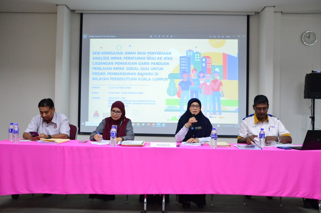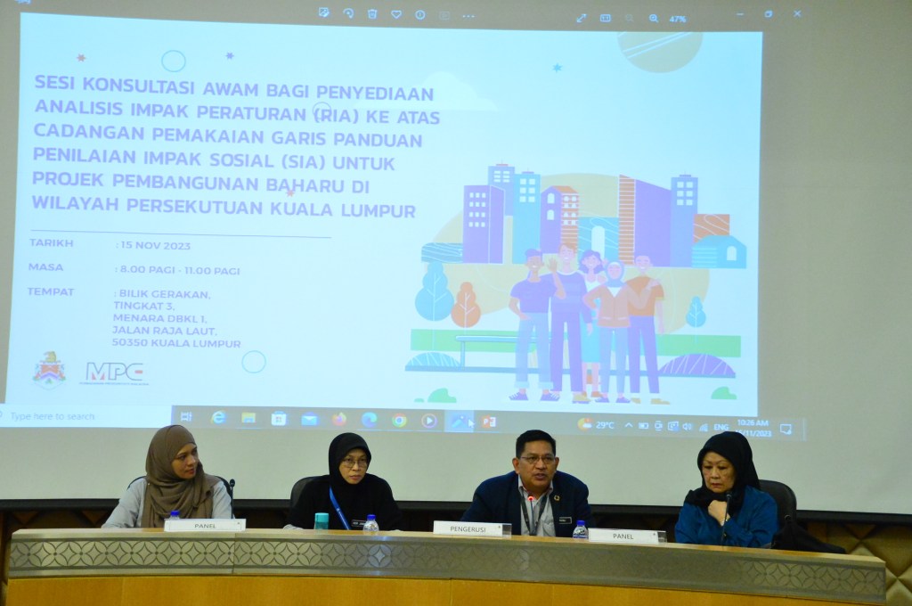 A Team of MSIA’s Professional Members attended as Panel Members to address SIA Matters at the DBKL’s Konsultasi Awam bagi Penyediaan RIA ke atas Cadangan Draf Garis Panduan bagi Projek Pembangunan Baharu di Kuala Lumpur. Represented by Elly Ruhayu binti Jamain, Raja Nur Ashikin binti Raja Zainal, Dr Kuppusamy Singaravelloo, Pn Sri Dr Jahara bt Hj Yahaya, Professor Dr Azami Zaharim, Lee Hwok Lok, and Dr Gobi Krishna Sinniah