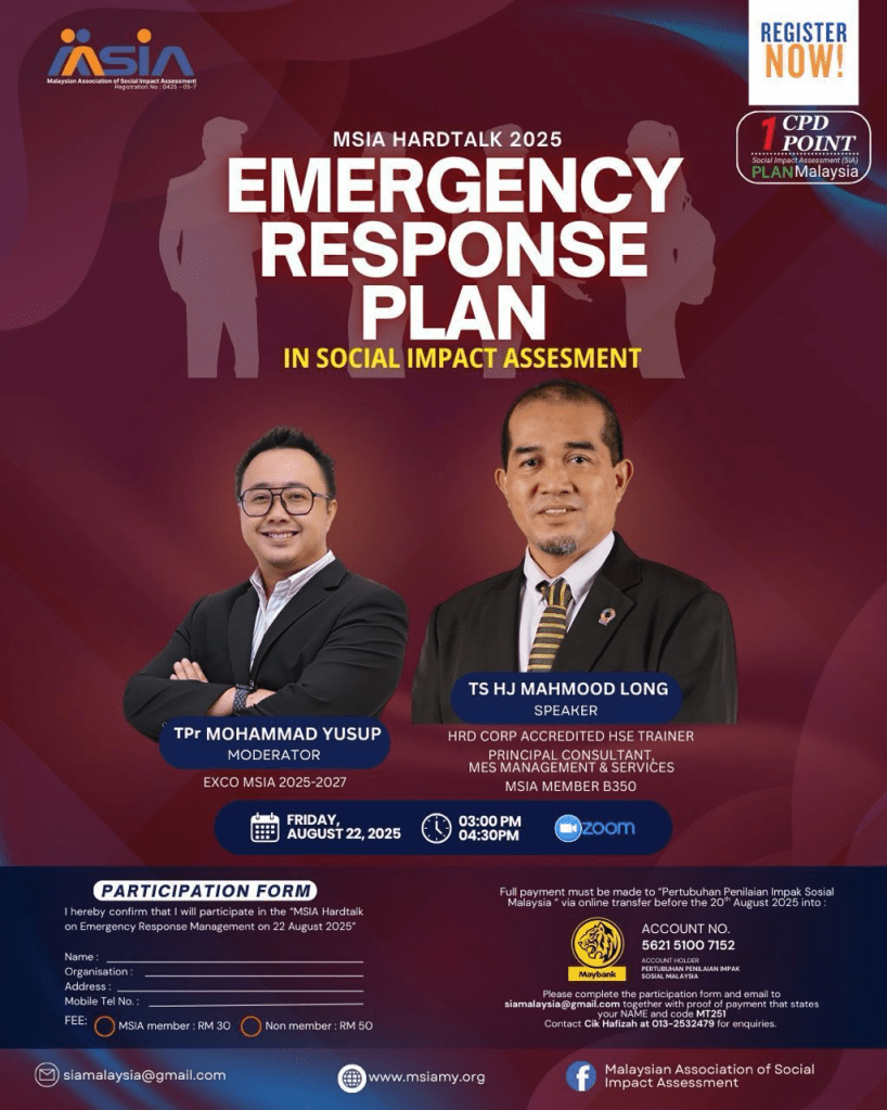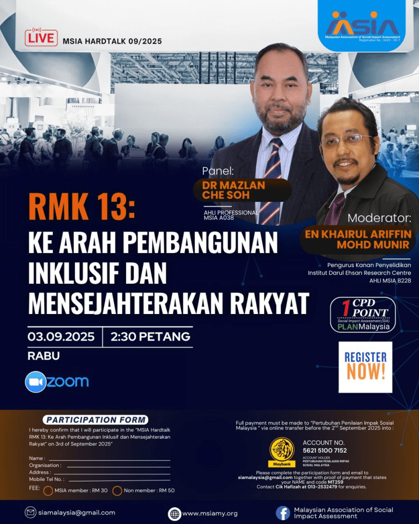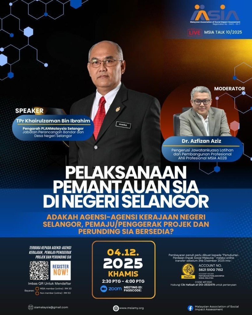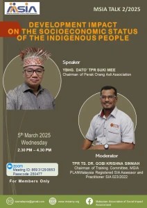 MSIA Talk 3/25. ‘SIA in Public Policy Formulation: A Framework for Inclusive Development‘, by Mr Saiful Bahari bin Amra Ramly (A039) and Dr Mazlan bin Che Soh (A038), Moderated by TPr Herlina Ab Aziz (A003) on 17 April 2025