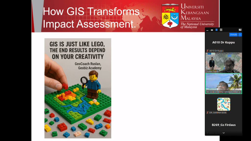 MSIA Talk 4/25. ‘The Application of GIS in Social Impact Assessment‘, by Prof. Gs Dr Ruslan Rainis (Hon. Prof., Institute for Environment and Development (LESTARI) UKM), Moderated by TPr Ts Dr Gobi Krishna Sinniah (A013) on 8 May 2025
