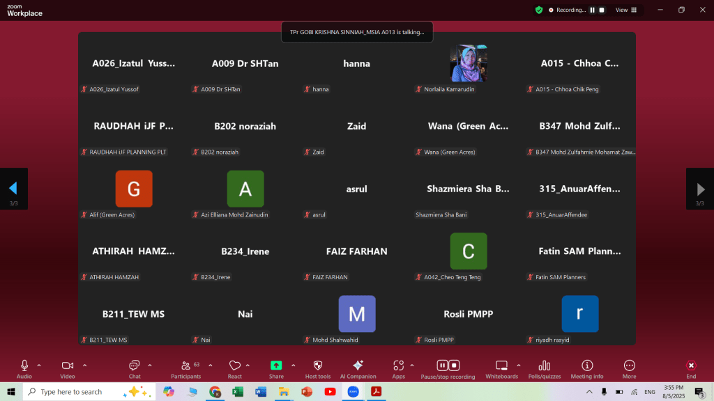 MSIA Talk 10/2025: ‘Pelaksanaan Pemantauan Di Negeri Selangor‘ by TPr. Khairulzaman bin Ibrahim (Direrctor of PLANMalaysia Selangor), moderated by TPr. Yusnaim bin Abdul Rani (A034).
