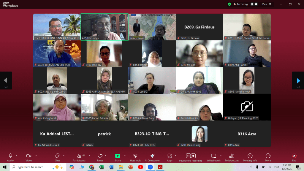 MSIA Exco Members attended a Meeting to Reviewing the Questions for PLANMalaysia’s Competency Examination 2025. Attended by Pn Sri Jahara Yahaya (A016), Dr Kuppusamy Singaravelloo (A010), Dr Mohd Shahwahid (A014) and TPr Ts Dr Gobi Krishna Sinniah (A013) on 17 April 2025