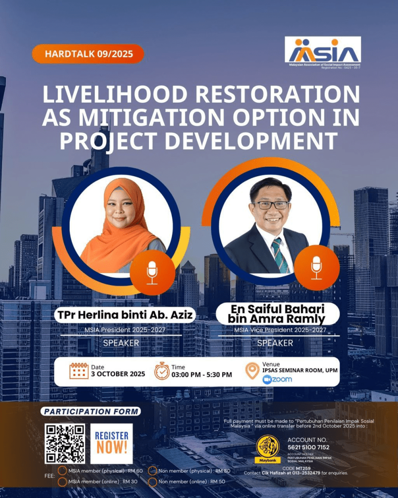 MSIA Hardtalk on ‘Livelihood Restoration as Mitigation Option in Pproject Development, by TPr Herlina Ab Aziz (A003) and En. Saiful Bahari bin Amra Ramry